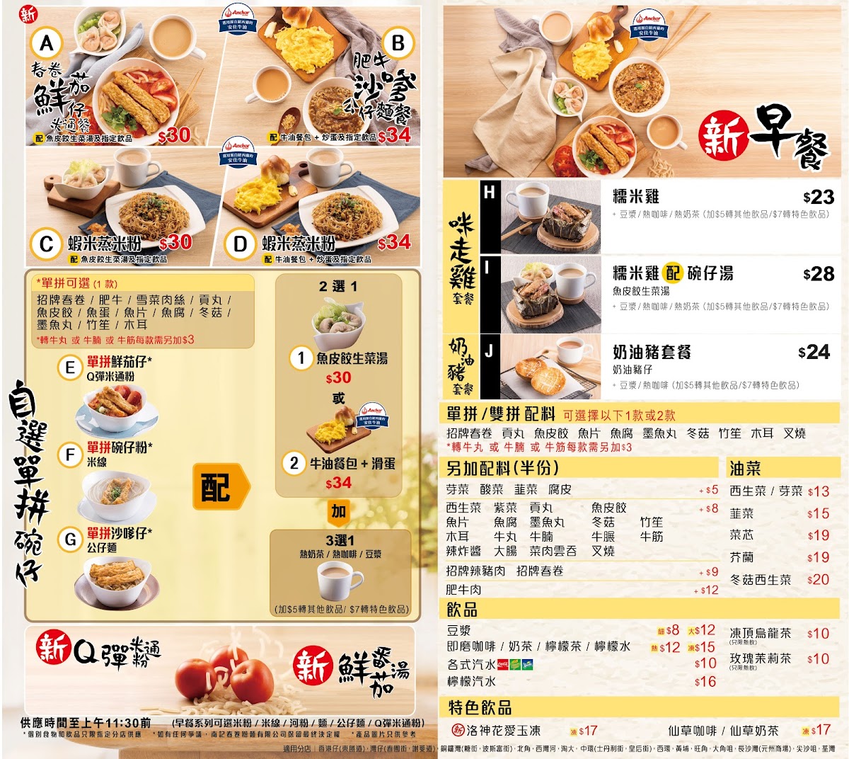 The menu features a variety of expertly crafted noodles, with standout dishes including the fan-favorite spring rolls noodles in a tangy sour chilli soup base. Reviews highlight the restaurant's affordability with breakfast options averaging around 40 HKD, making it an ideal spot for both a quick bite and a leisurely meal.